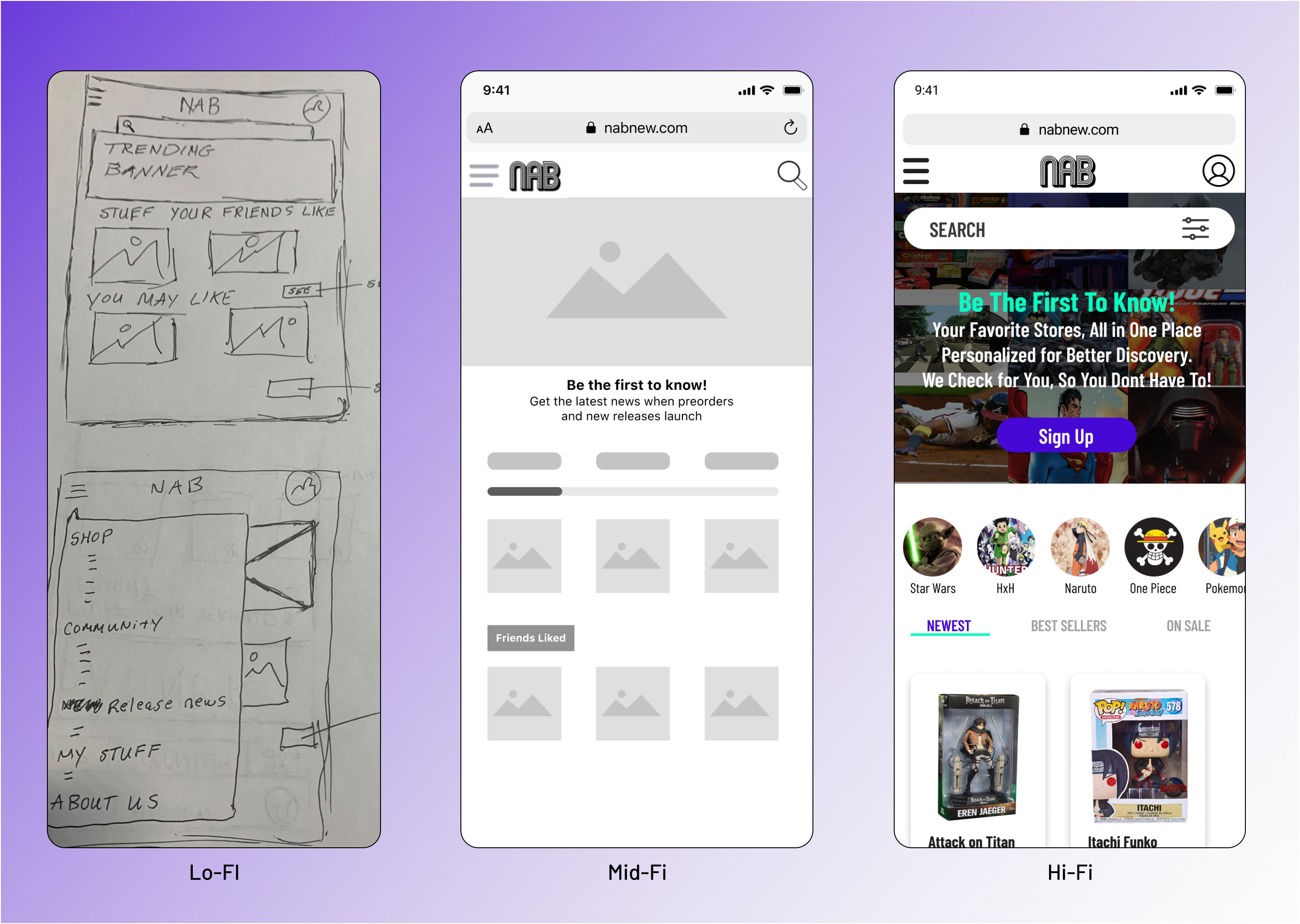 Nab New is a social shopping platform designed for the $19.5B fandom collectibles industry. It helps fans discover, share, discuss, and secure new releases before they sell out, while providing a safe and engaging community experience, much like a modern comic book or card shop.