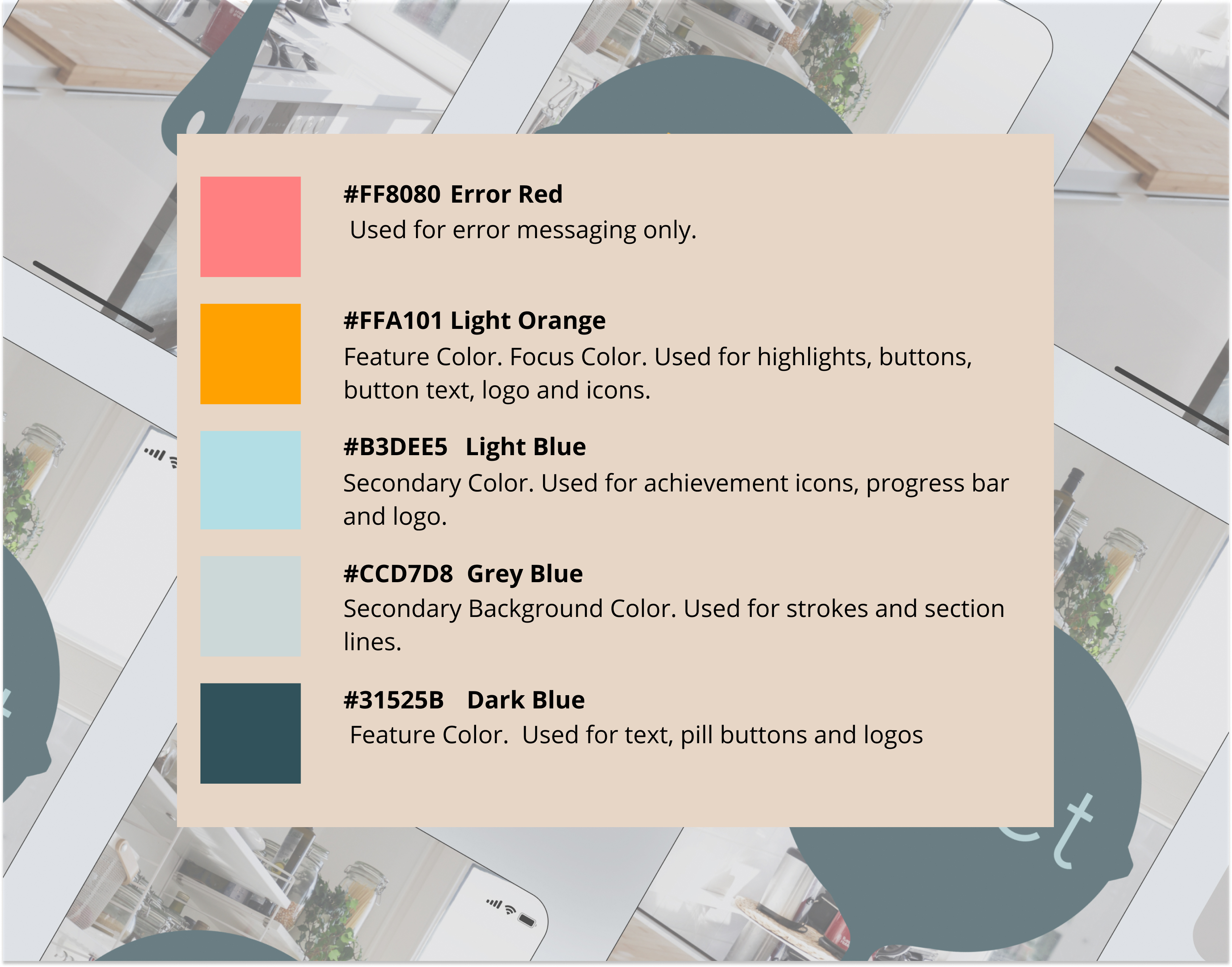 We started by selecting a color palette that communicated professionalism, educational value, and a connection to food. Our goal was to strike a balance of visuals needed to be clear and engaging without overwhelming Frank with unnecessary complexity or dense copy. The palette we chose is an analogous scheme supported by two complementary colors for contrast and hierarchy.